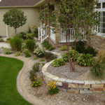We dig out all bed areas first then add in bedding soil - install plants then thick fabric with granite or mulch to top it off